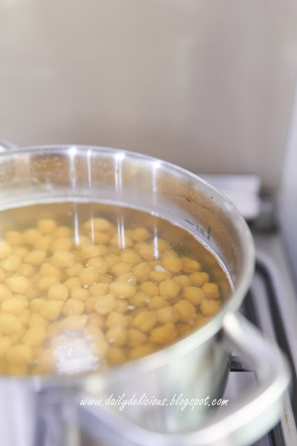 ** You can use canned chickpeas too, by using 300 g of drained canned chickpeas and skip the boiling process.